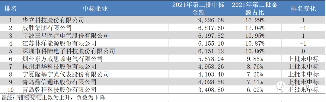 有5家企业本批新中标(2021年第一批有1家新中标企业); -