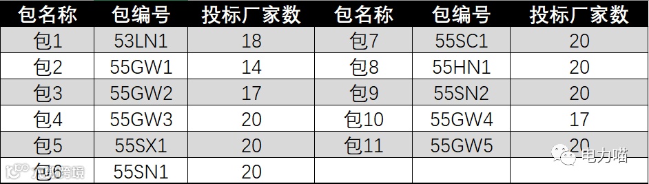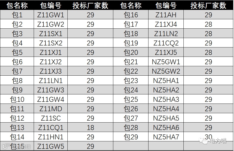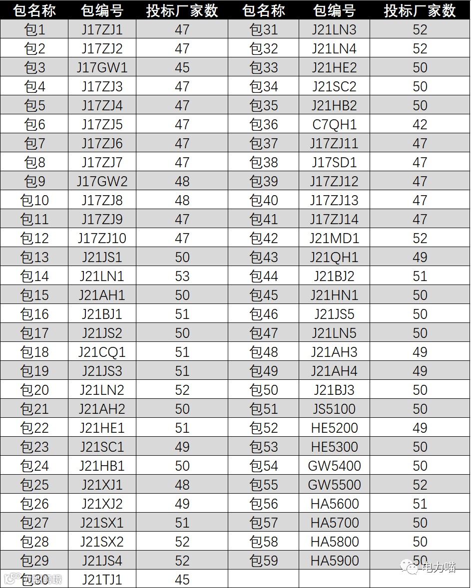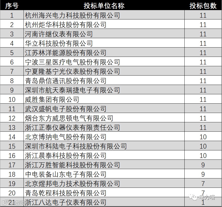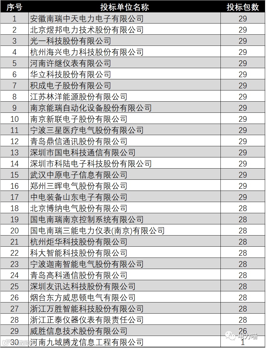 根据统计,共有17家企业参与了专变采集终端全部29个标包的投标。