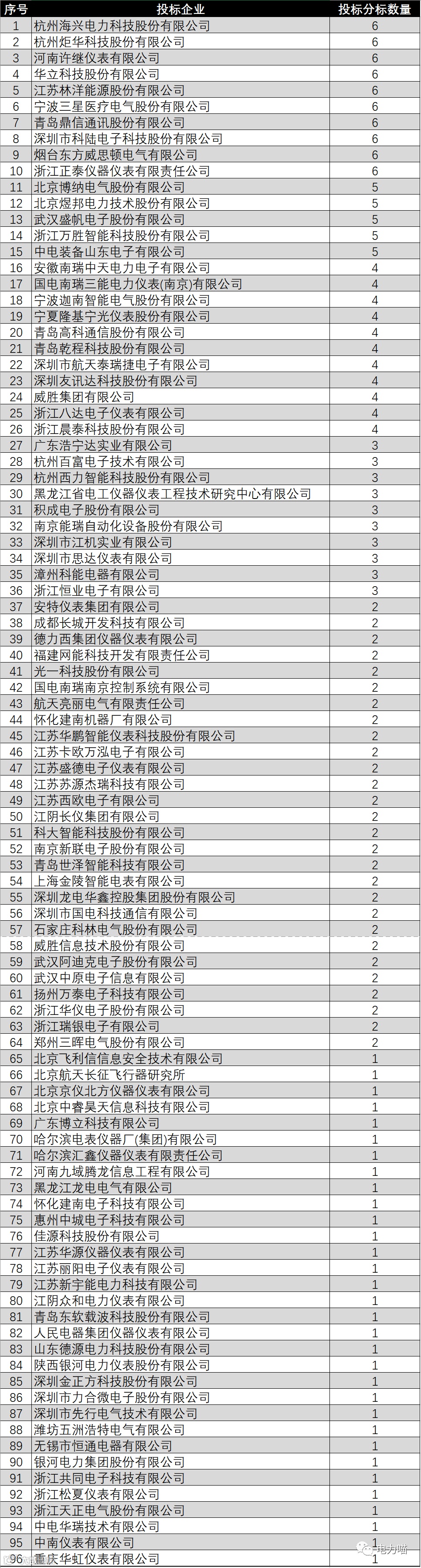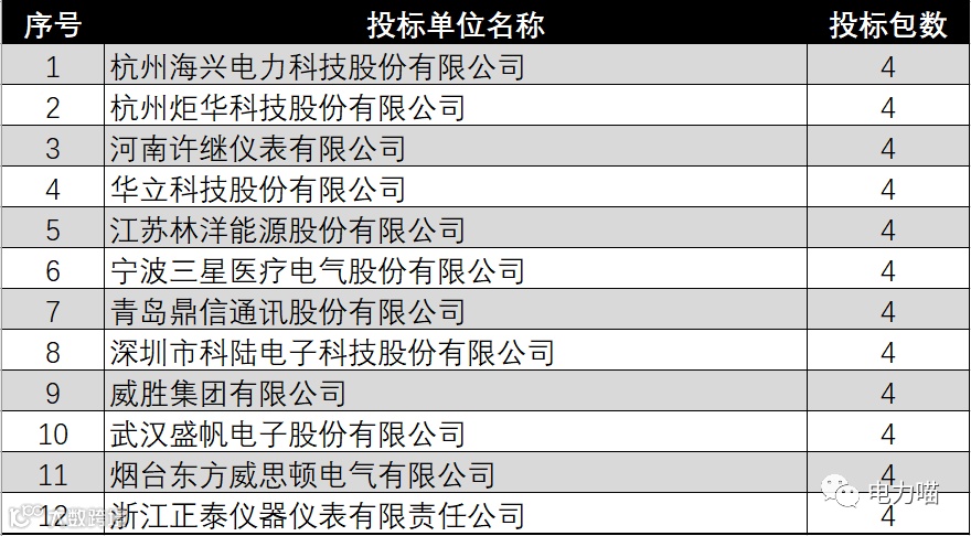 根据统计,共有12家企业参与了D级(0.2S级)三相智能电能表全部4个标包的投标。