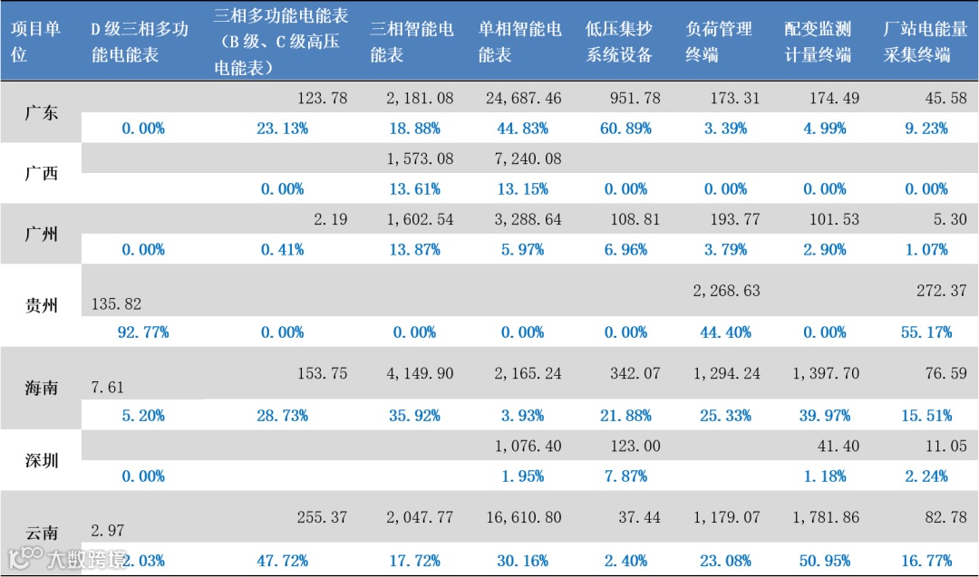 低压集抄系统设备:广东需求量最大,占比60.89%;主要来源于海南需求量占比也超过20%。