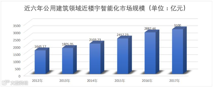 当然,仅以上建设内容,已经形成了一个千亿级的市场。根据前瞻产业研究院公布的中国市场数据,截止到2017年,工业建筑领域楼宇智能化市场规模达到1870亿元,年复合增长率10%左右;公用建筑领域楼宇智能化市场规模达到3100亿元,年复合增长率15%左右。