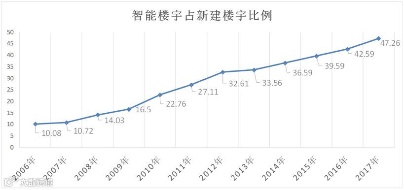 而从中国市场楼宇智能化建设覆盖率来看,截止到2017年,智能楼宇占所有新建楼宇的比例为47.26%。而不管是从运营方的需求来看,还是政府的政策导向来看,楼宇智能化市场仍有十分广阔的空间。