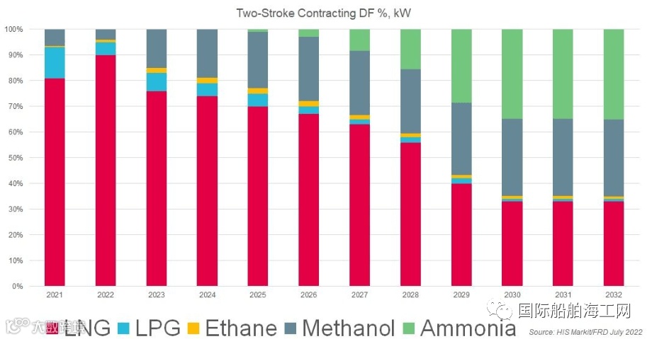 针对今后大型远洋船舶主机双燃料市场的发展趋势,英国HIS发布LNG、氨燃料、甲醇10年内将三分全球远洋船舶主机双燃料市场,其中氨燃料市场份额将越来越大,10年内氨将主导,如下图示。上海将继续分别举办三场LNG、氨燃料、甲醇产业论坛。更多详细内容请关注会议进展。