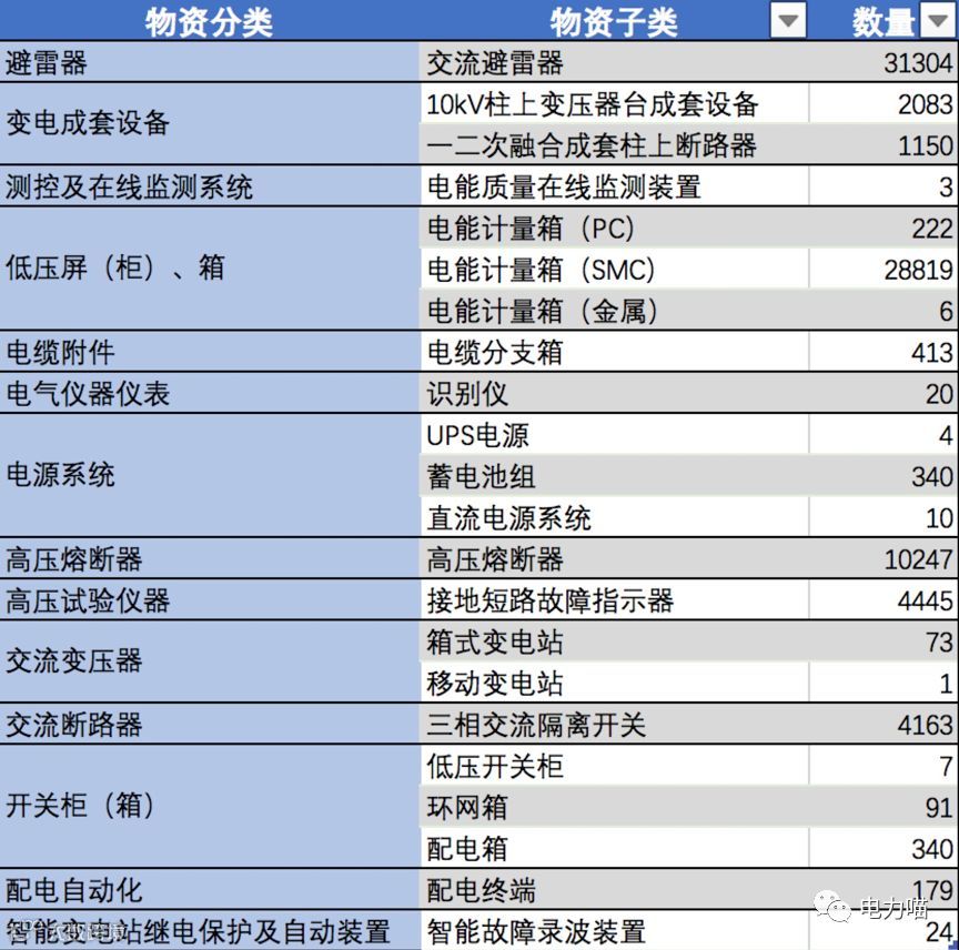 本日招标项目中,共有14个物资分类、22种主要的配用电设备物资发布了招标。主要需求集中在交流避雷器、10kV柱上变压器台成套设备、电能计量箱、一二次融合成套柱上断路器、高压熔断器、三相交流隔离开关、接地短路故障指示器等物资,详见表3。