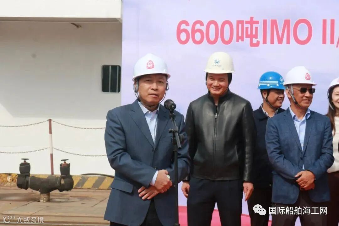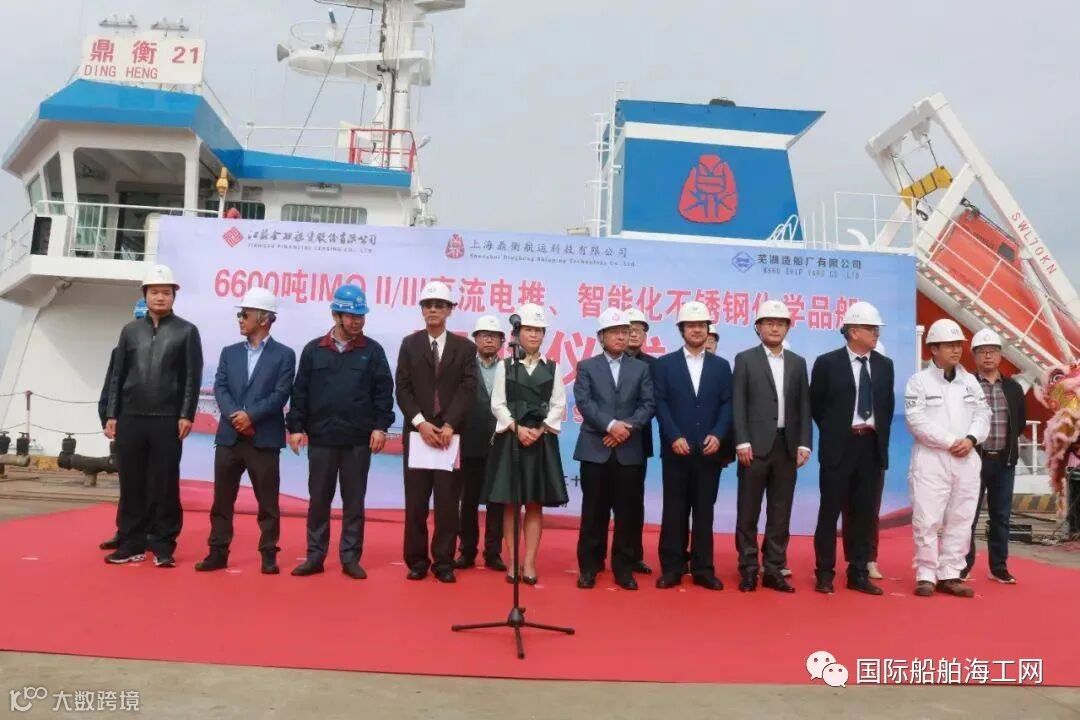交船仪式 上,芜湖造船厂董事长代表公司向为该船建造交付而通力协作的 鼎衡航运科技、江苏金融租赁,中国船级社芜湖分社等各方合作伙伴,以及为实现交船倾力付出的芜船工匠们表达感谢。我们将以6600化学品船的建造为契机,积累经验发挥优势,为船东继续交付更优质的精品船舶。