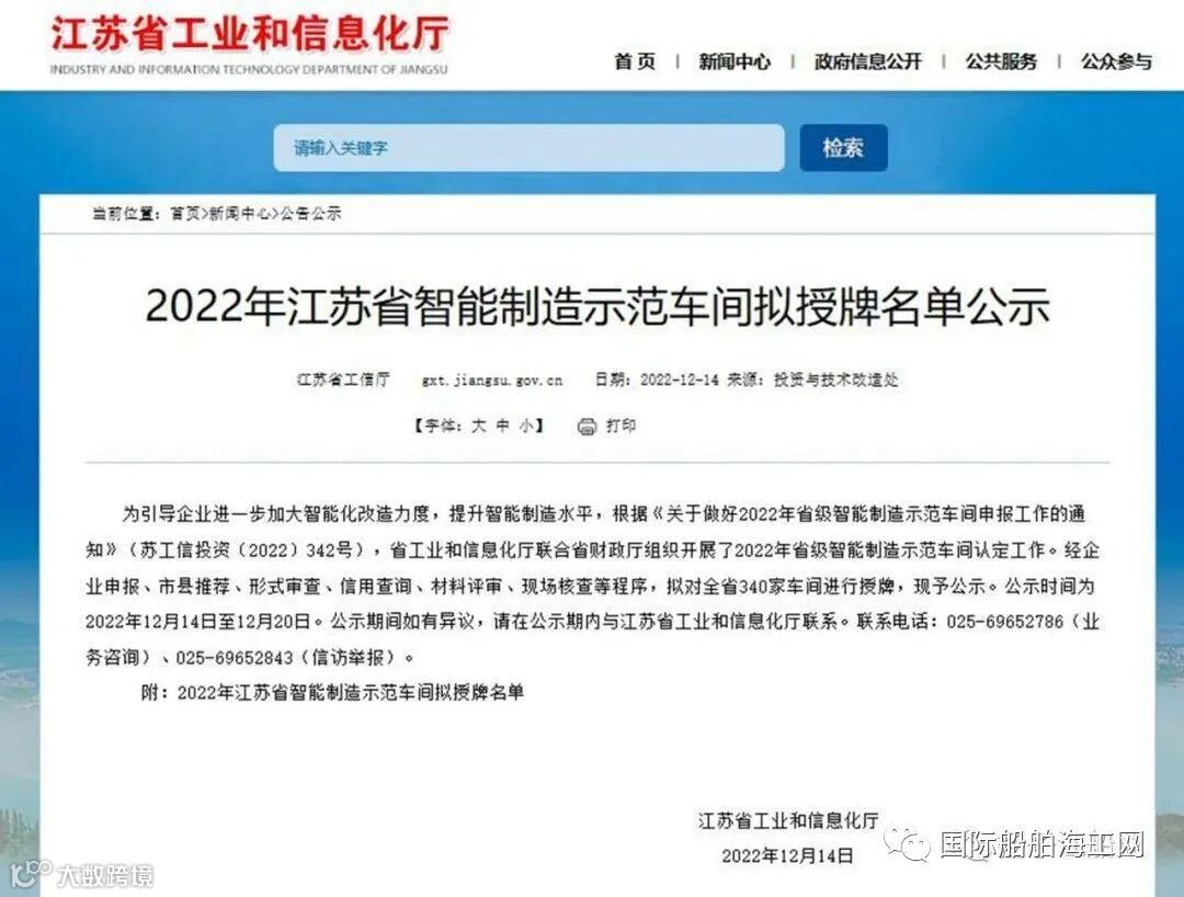 为进一步鼓励企业加大智能化改造投入力度,提升企业智能制造水平,江苏省工业和信息化厅联合省财政厅组织开展了2022年省级智能制造示范车间认定工作。经过省市领导和专家的层层筛选及现场勘查,江苏新扬子造船有限公司“高强度船用结构钢精准切割智能制造车间”成功入选。