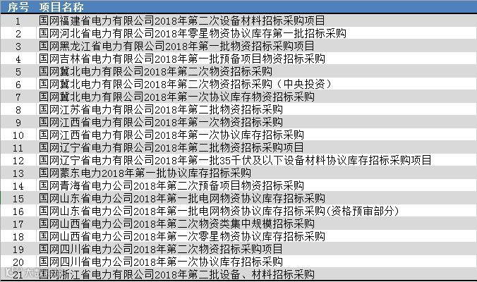 在4月份国网范围14个省级电力公司全部发布招标项目,共发布了21个设备类产品省招项目。