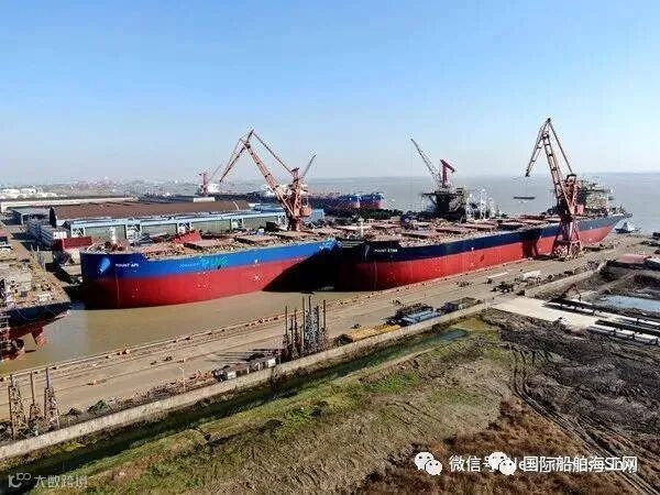 2月18日中午,位于靖江的新时代造船公司3#坞区域,35#46#210000吨双燃料动力散货船两船相继驶出船坞,下水大节点顺利实现,标志着公司全年下水船舶23艘计366.4万载重吨的目标完美收官。本次坞期42天,不仅刷新了21万吨双燃料动力散货船坞内建造周期的最短纪录,而且出坞完整性也取得了新突破。