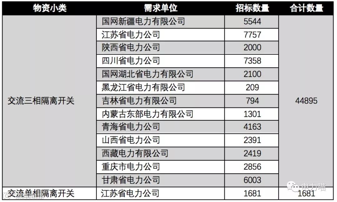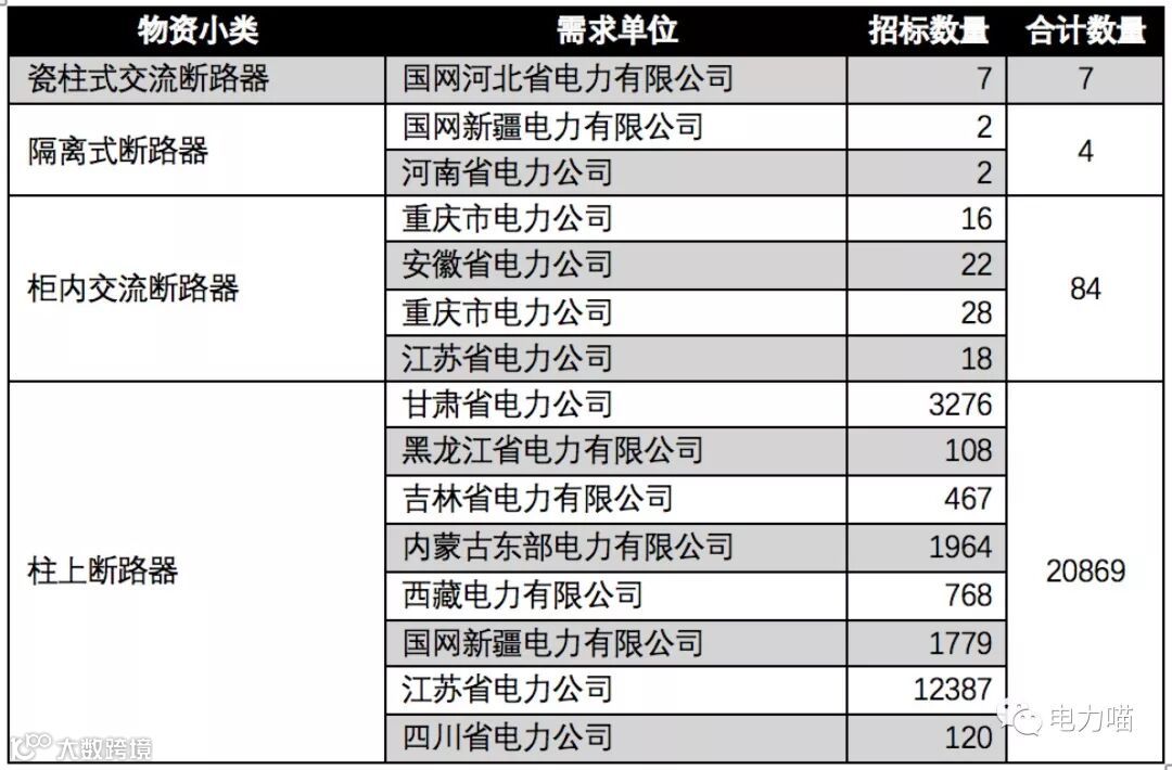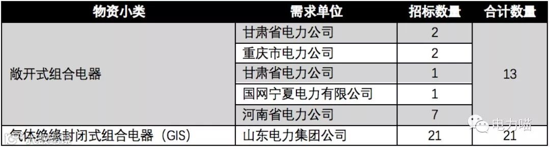 在第一季度,共有6个省级电力公司有相关2种小类物资的需求。其中:敞开式组合电器有5个单位有需求;气体绝缘封闭式组合电器(GIS)有1个单位有需求。