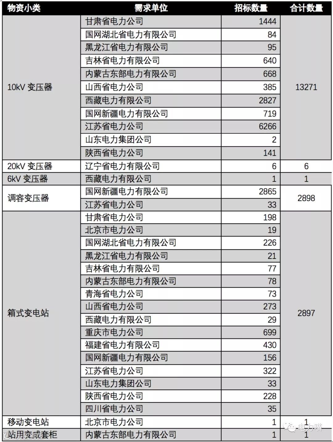 在第一季度,共有17个省级电力公司有相关7种小类物资的需求。其中:10kV变压器有11个单位有需求;20kV变压器有1个单位有需求;5kV变压器有1个单位有需求;调容变压器有2个单位有需求;箱式变电站有16个单位有需求;移动变电站有1个单位有需求;站用变成套柜有1个单位有需求。
