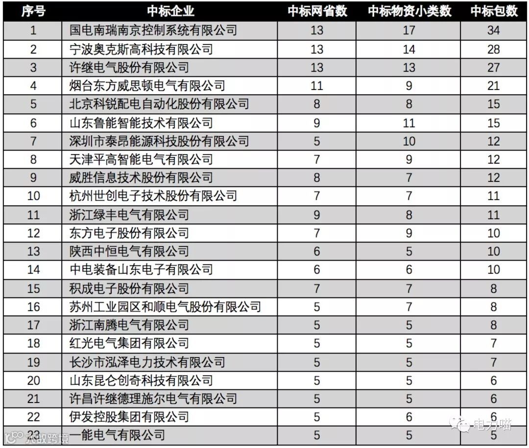 在物资统计范围内,一季度中标的548家企业中,其中23家企业实现中标网省数、中标物资小类数、中标包数全部达到及超过5个。