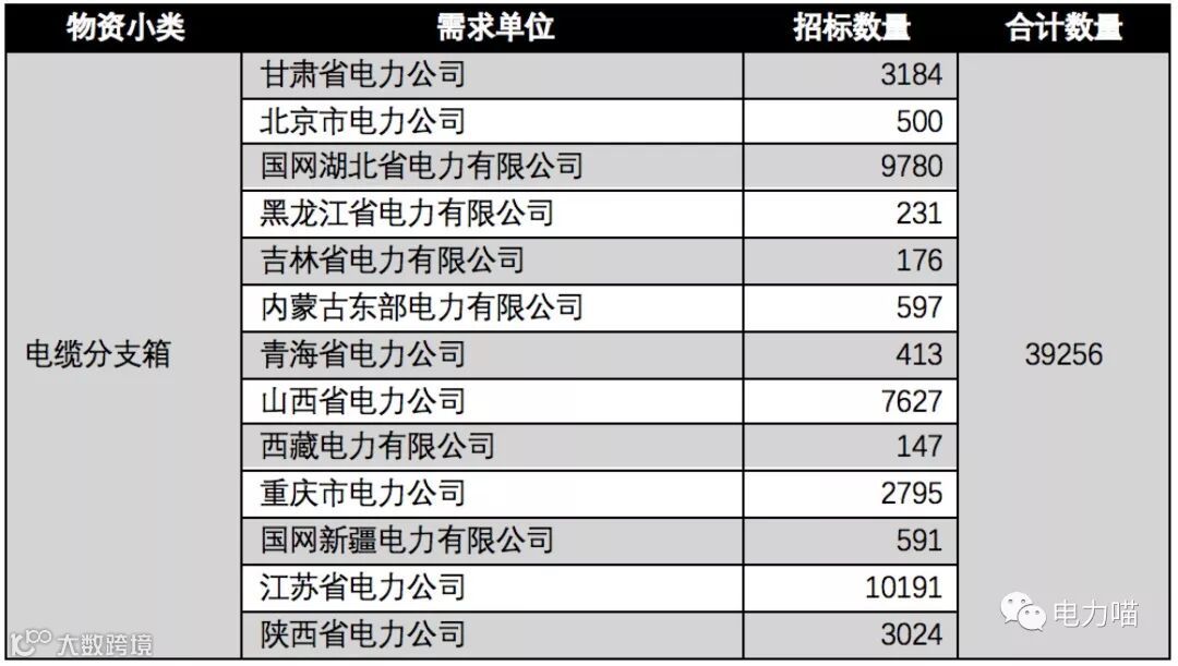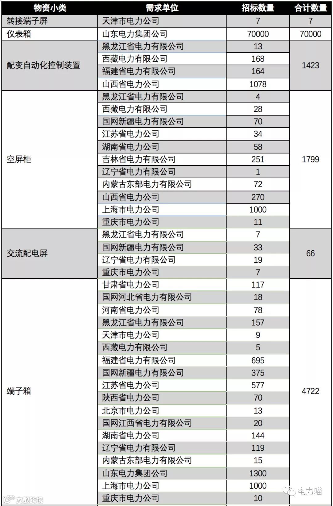 在第一季度,共有7个省级电力公司有相关小类物资的需求。