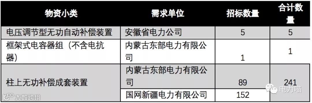 在第一季度,共有3个省级电力公司有相关3种小类物资的需求。其中:电压调节型无功自动补偿装置有1个单位有需求;框架式电容器组(不含电抗器)有1个单位有需求;柱上无功补偿成套装置有2个单位有需求。