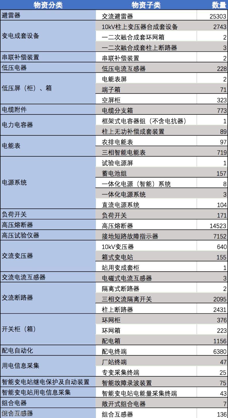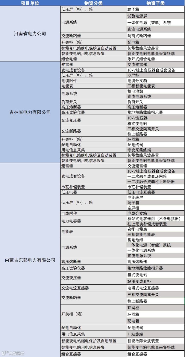 本日招标项目中,共有22个物资分类、39种主要的配用电设备物资发布了招标。