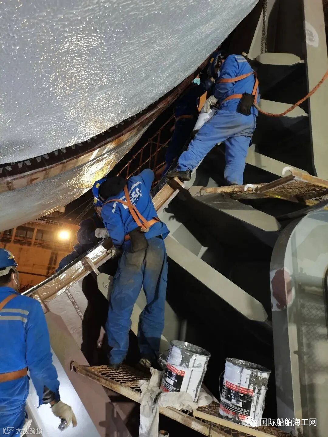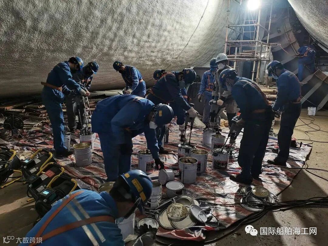 2023年新年的钟声即将敲响,但广船国际总装人并没有松懈,而是始终保持着高度的工作热情与认真的工作态度,奋斗在生产现场的各个角落。2022年12月25日凌晨,2号坞G3128 船两台 LNG 罐顺利完成吊装安装。