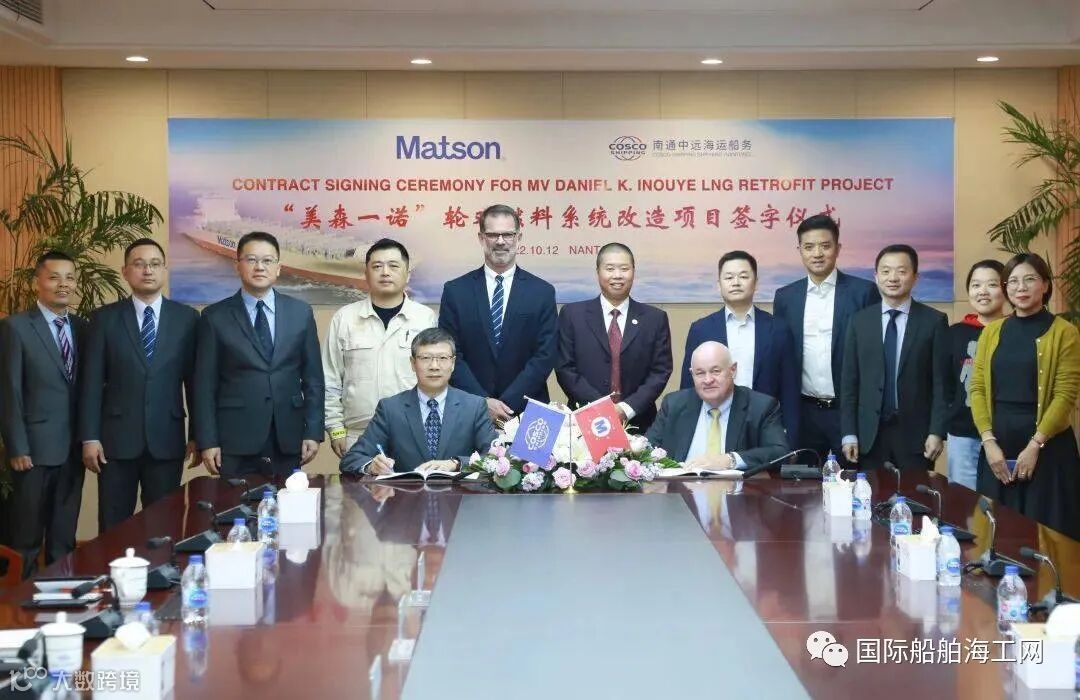 10月12日,南通中远海运船务与美国船东Matson船东公司签订“Daniel K. Inouye”轮LNG双燃料供气系统改造项目订单,再一次凸显企业在双燃料改装市场的突出实力。
