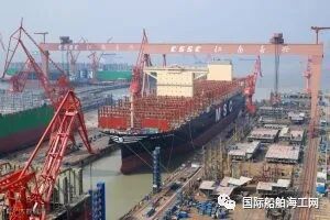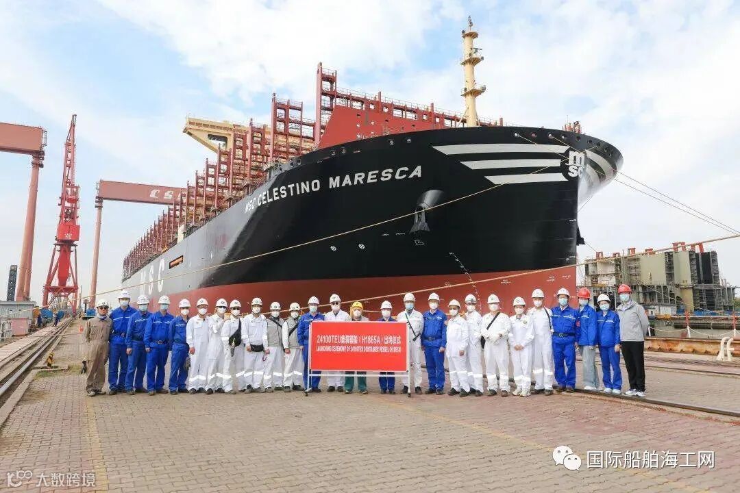 10月11日上午,沪东中华造船公司为地中海航运公司建造的第2艘24100TEU集装箱船(H1865A)在长兴造船一号船坞顺利出坞。