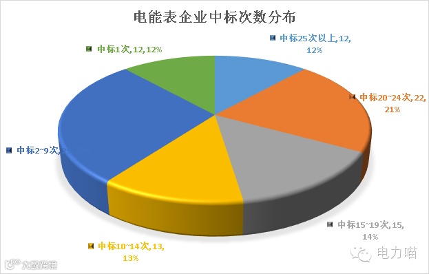 二、电能表企业中标次数分布情况