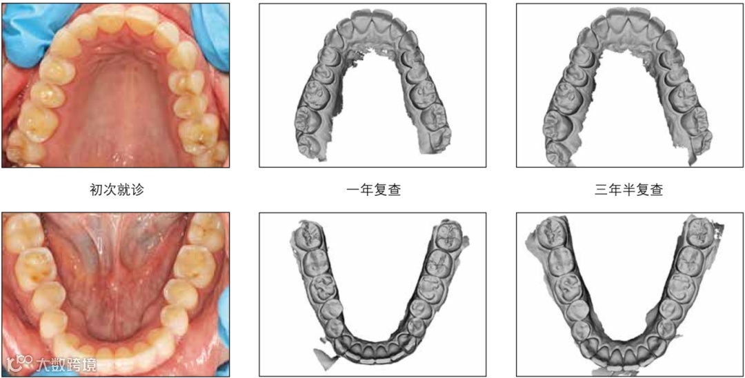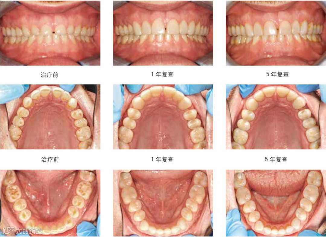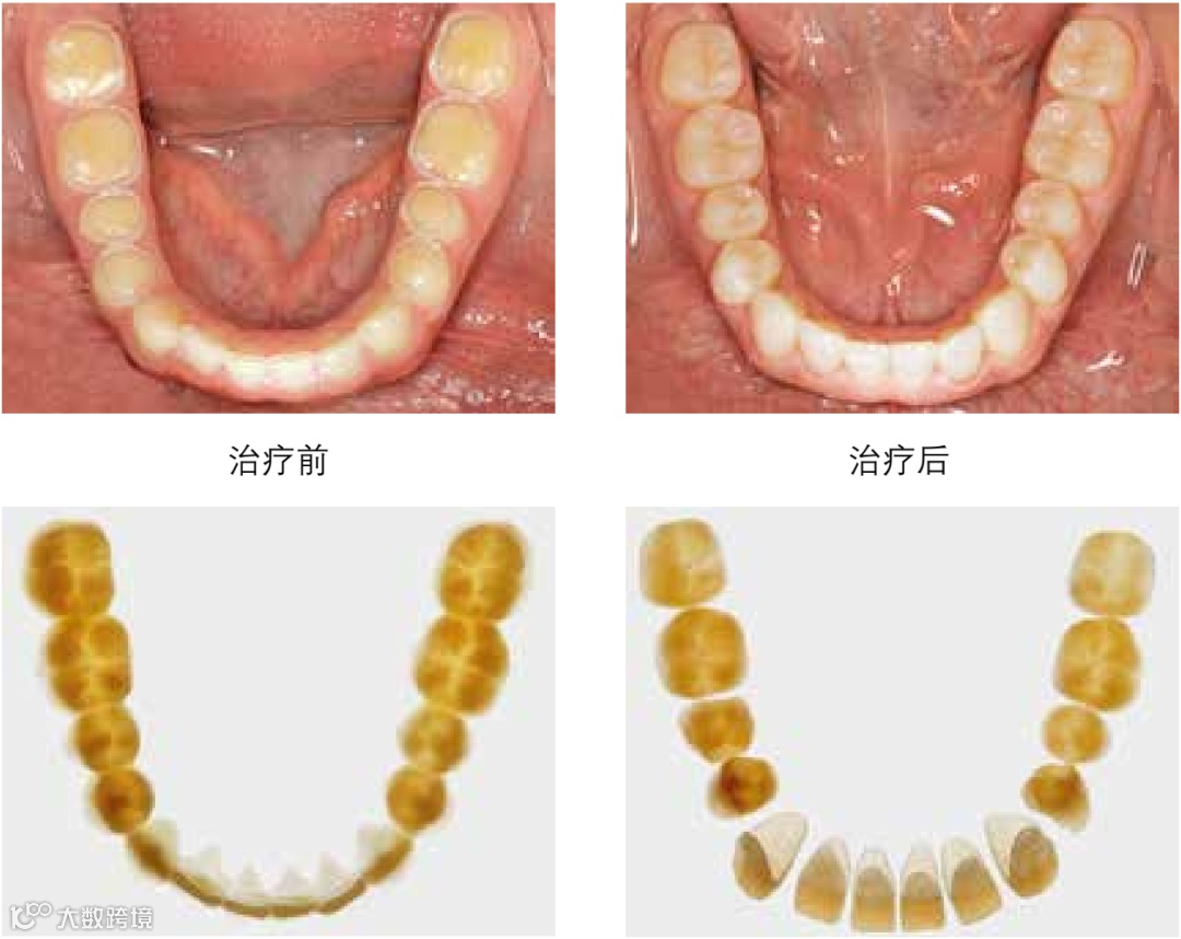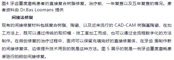 图5 牙齿重度磨耗患者进行的间接法复合树脂修复。治疗前后的情况。医师:Dr.Daniel Edelhoff教授