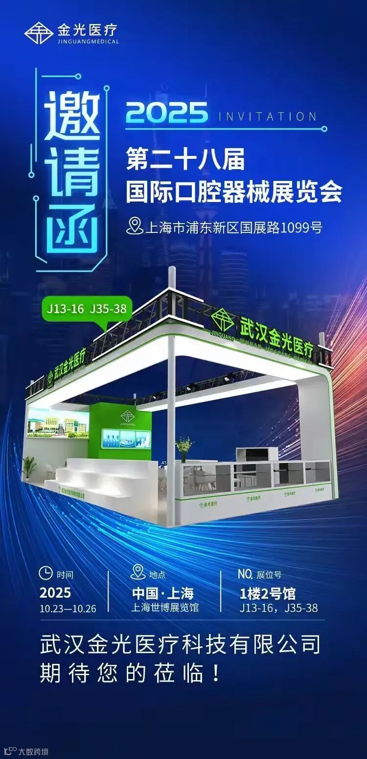 金秋十月,黄浦江畔风起云涌。作为亚太地区口腔领域的风向标,DenTech China 2025上海国际口腔展于2025年10月23日-26日在上海世博展览馆隆重启幕。武汉金光医疗科技有限公司已携多款年度创新技术与产品解决方案整装待发,诚邀口腔医疗届新老朋友共聚J13-16、J35-38展位,参与这场科技与智慧交融的口腔盛宴!