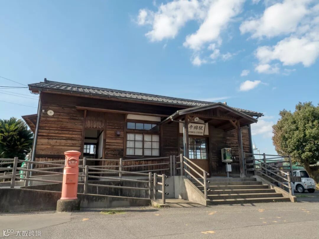 这一站最大的两个特点是:靠海一侧没有围栏,游人可以在不受遮挡的情况下欣赏美丽的大海和夕阳;另外,整座车站是昭和时代的木制建筑,配上褪色的红邮筒,充满了怀旧感。
