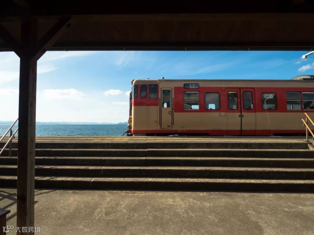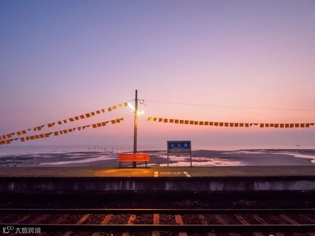 九州西部的有明海是日本潮汐差最大的海湾,退潮时,沙滩上会留下许多斑驳美丽的小水滩。大三东站就是有明海边的一个小站,无人值守。