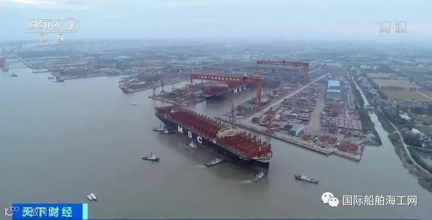 江苏泰兴:两艘全球最大集装箱船出坞