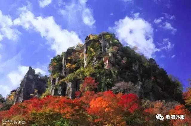 红叶的美丽和大山的岩石相互衬托,美丽动人。特别是每年初雪的时候,白雪与红叶的强烈对比映射出一种猛烈的美感,让人感动。