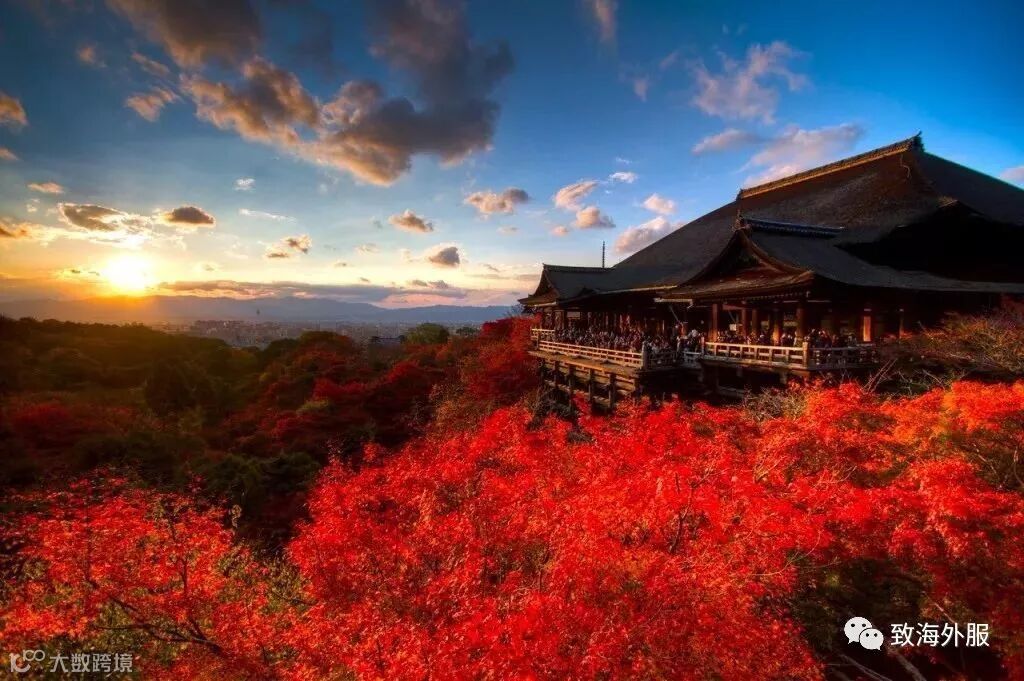 清水寺的秋天,我们再熟悉不过了~租一身和服,穿梭在红叶丛中,日剧中的美好画面,亲自来体验一下吧!枫叶季期间,清水寺的晚间也有灯光秀哦!