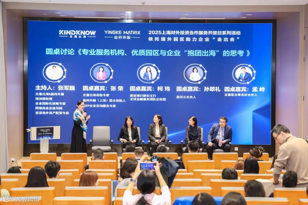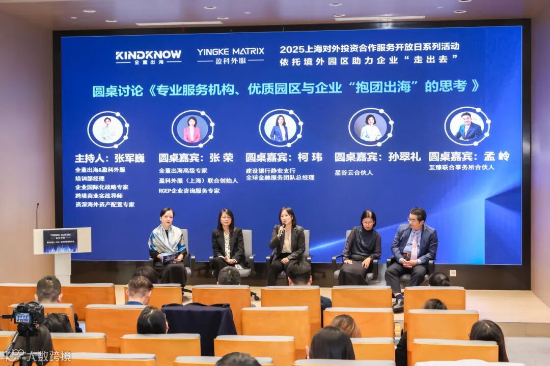 在全董出海培训部经理张军魏的主持下,一场以 "专业服务机构、优质园区与企业'抱团出海'的思考" 为主题的圆桌讨论将活动推向高潮。盈科外服(上海)创始合伙人、全董出海高级专家张荣表示:"企业出海要做好合规路径,让专业服务机构提前介入企业出海决策过程。"建设银行静安支行全球金融服务团队总经理柯玮分享了跨境金融创新方案,星谷云合伙人孙礼翠强调了数字化赋能企业出海的重要性,至臻会计师事务所合伙人孟岭则就税务合规等议题提供了专业建议。