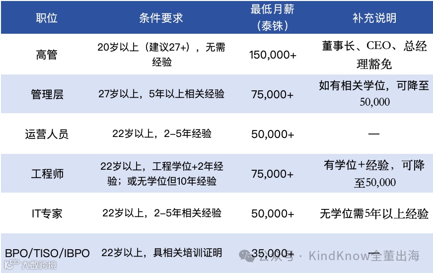 2. 最低薪资要求:所有外籍专家职位必须满足新的最低月薪标准,金额范围从 35,000 泰铢至 150,000 泰铢,视职位、经验及学历而定。