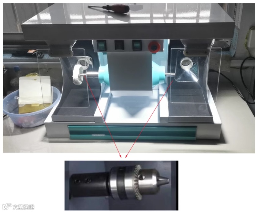 ②夹持头最好是内置螺纹固定,防止夹持头在抛光时受力不均匀意外脱落,轴套与电机转轴间最好是顶丝固定保证牢固