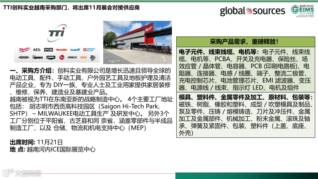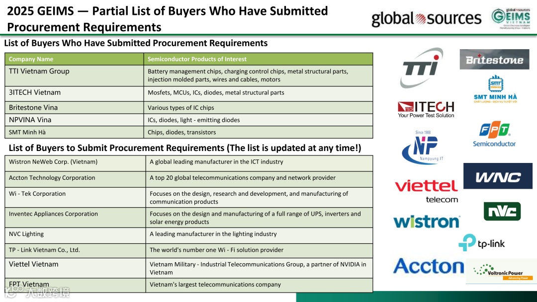 Serving Vietnam's electronic manufacturing industry, including consumer electronics, mobile electronics, new energy, smart home, medical devices, automobiles and other industrial fields, focusing on the one - stop display of upstream manufacturing supply chain products.