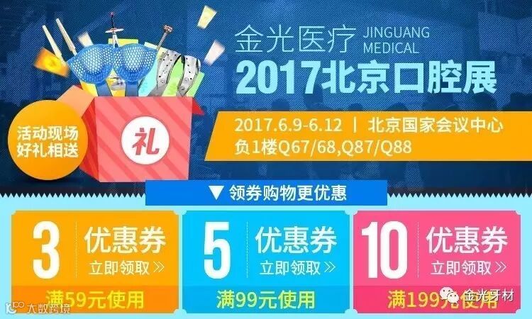 【SINO-DENTAL北京国际口腔展】2017年6月9-12日,北京国际会议中心。武汉金光公司展位号负一楼:Q67-68,87-88,欢迎各位新老顾客莅临,现场惊喜活动不断,好礼送不停。
