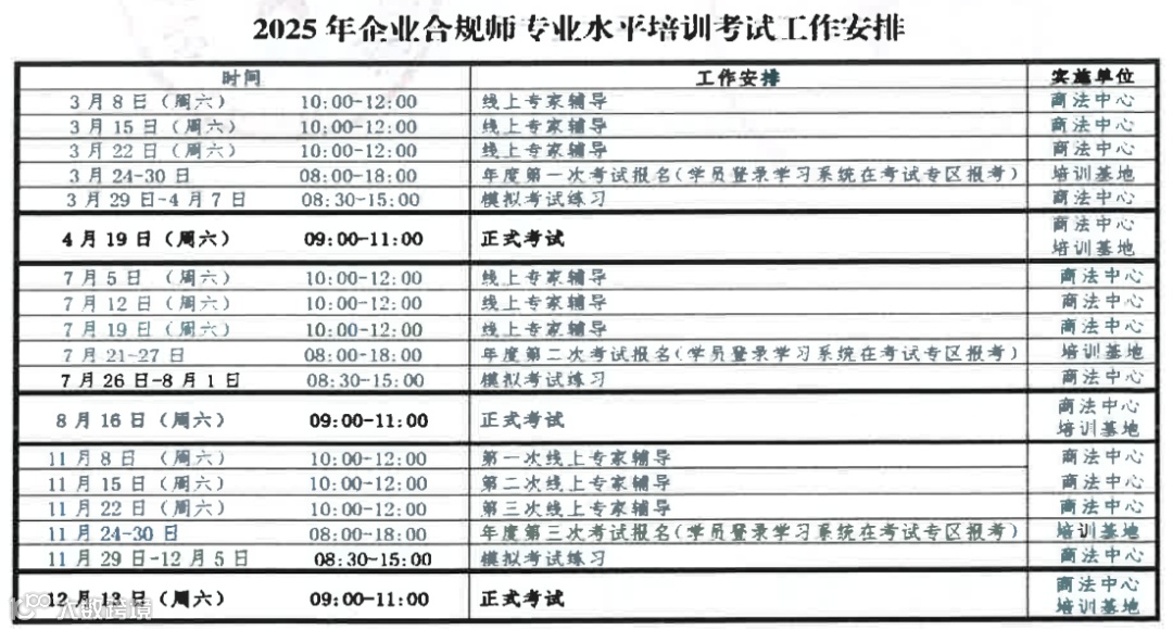 每年安排三次考试,分别在每一年的4月、8月、12月中旬,学员应在学期内完成规定课程并参加正式考试。根据年度考试计划安排,在每次考试报名起止时间内,学员可自行登录学习系统在考试专区报名参加考试。未通过考试的学员可补考一次。