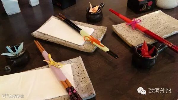 餐具的使用如果去餐厅,餐具往往已摆好,并不需要过多的担心摆放问题。如果你被邀请到家中做客,就要注意一些。日料餐具有筷子、茶杯、饭碗、汤碗四种。摆放方法是左边摆放饭碗,右边摆放汤碗,筷子要横向的摆放在筷座上。