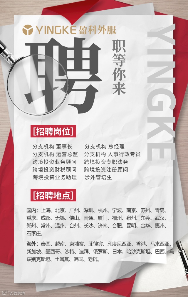 盈科外服—— 企业全球战略布局服务商,助力中国企业走出去。为企业出海提供“金融、法律、财税、商务、人力”一站式解决方案。