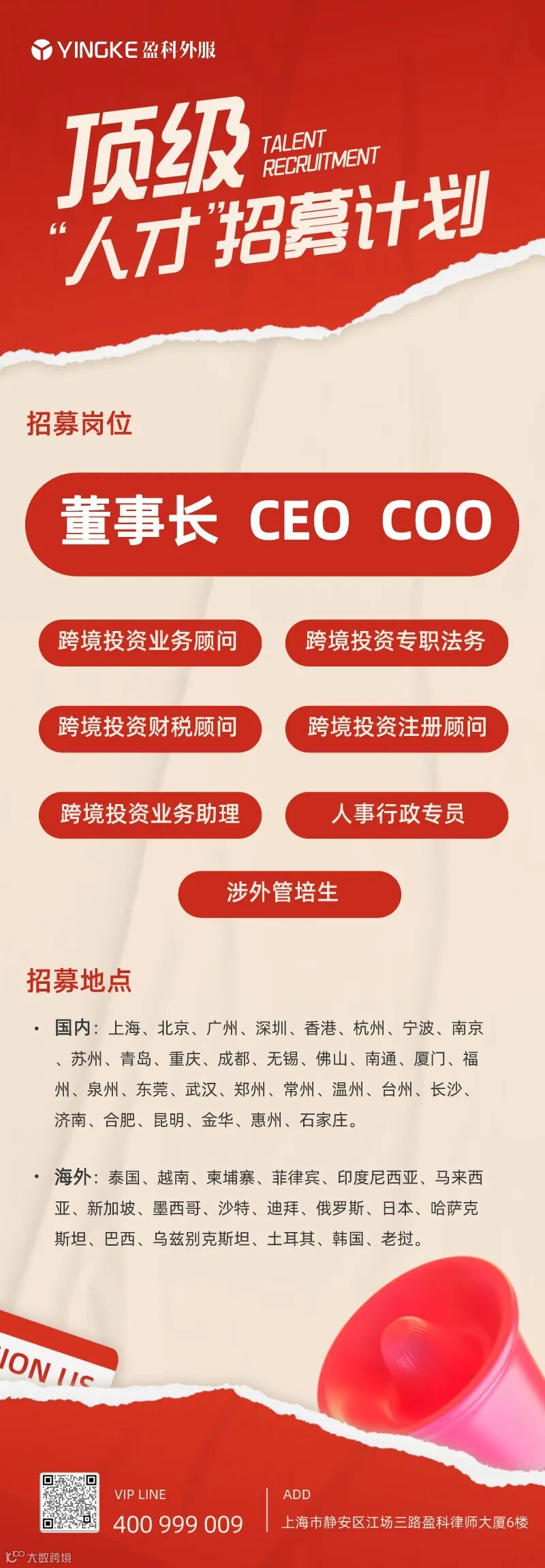 盈科外服—— 企业全球战略布局服务商,助力中国企业走出去。为企业出海提供“金融、法律、财税、商务、人力”一站式解决方案。