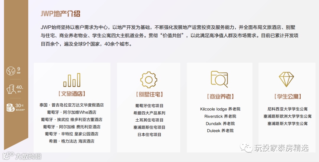 JWP品牌产品覆盖文旅酒店、别墅与住宅、商业养老物业、学生公寓等多元房产类别。
