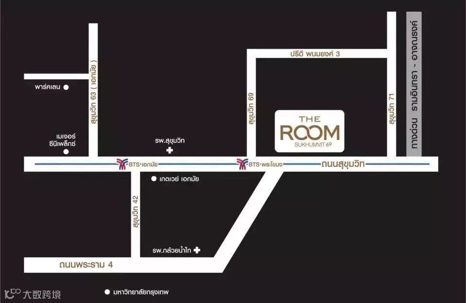 The Room Sukhumvit 69位于曼谷中轴线素坤逸大道69巷。。距离BTS PhraKhanong轻轨站仅100米,距离高速公路600米,出入十分便捷。这里是投资者竞相争夺的乐土,是城市标杆项目的首选目的地。坐享优质医疗资源,与一流名校为邻环绕着优质的配套设施,曼谷最好的购物中心、国际学校、私立医院、城市公园、奢华酒店……