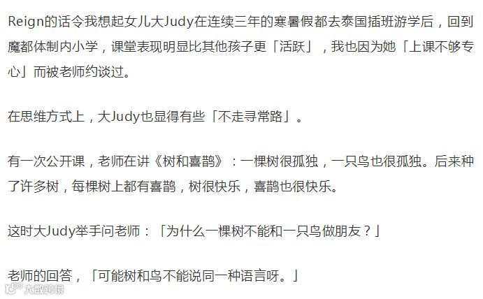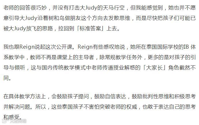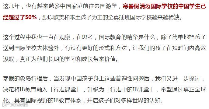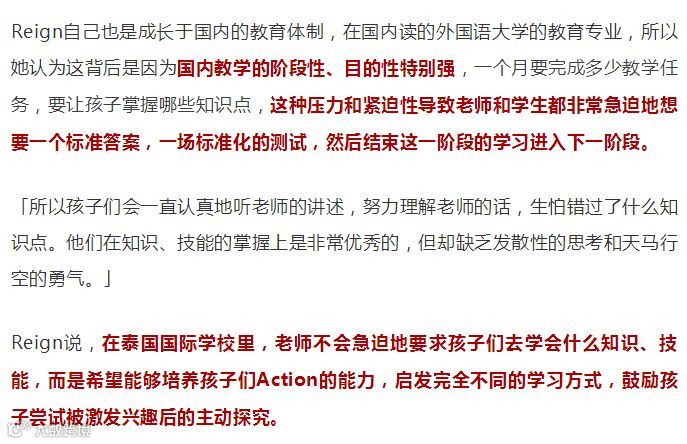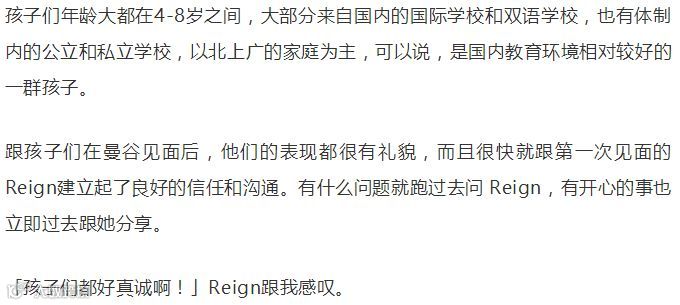 最近看到一篇中国家长发表的关于泰国教育的文章,特别有意思。作者晓芮考察过东南亚上百所国际学校,近3年来带女儿大Judy在泰国先后插班了十来所国际学校,大家都称她为东南亚女王。并且她把带女儿暑假参加「行走课堂」行程中带队老师Reign的一些观察发现,以及她自己的问题和思考整理成文,全文有5000字左右,但非常值得阅读。推荐给作为中国家长的你们。