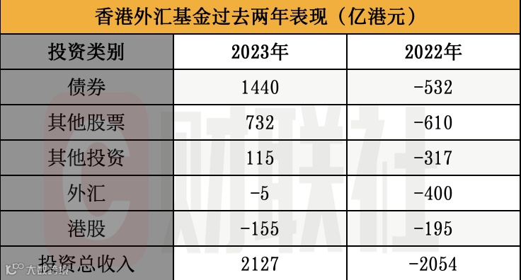 虽然香港股市去年表现全球垫底,但由香港金管局管理的外汇基金在2023年度表现着实惊艳,全年大赚2127亿港元。