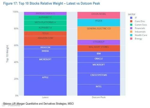 摩根大通直言,如今大盘涨幅依托少数超级权重股,与科网泡沫类似: