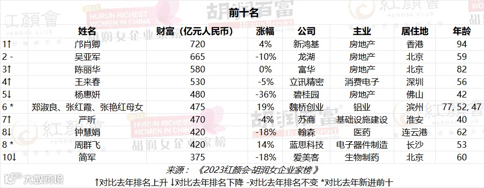 11月14日,胡润研究院发布《2023红颜会·胡润女企业家榜》,受益于港元汇率上涨及公司分红,新鸿基地产94岁实控人邝肖卿个人财富上涨至720亿元,首次成为中国女首富。