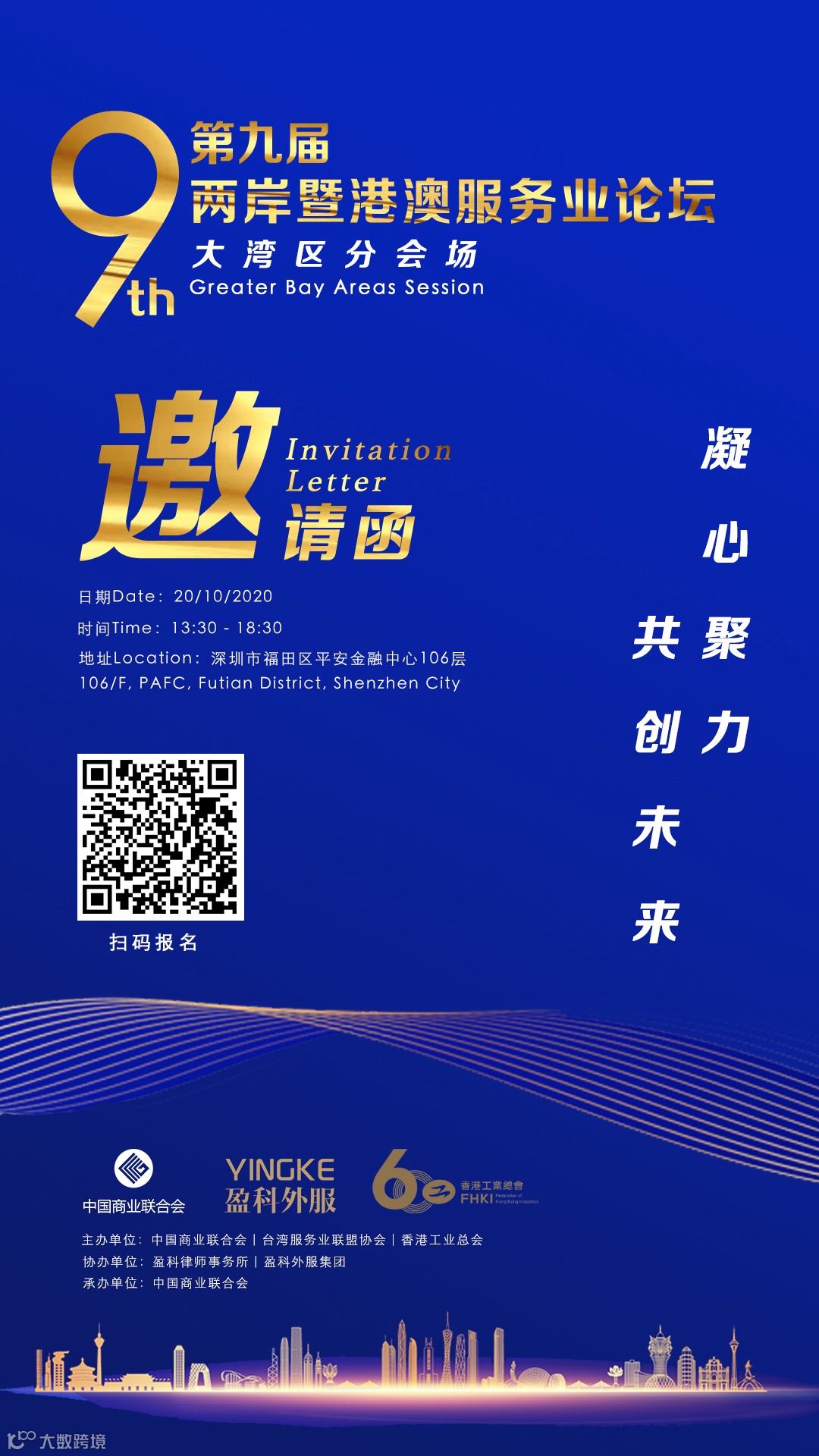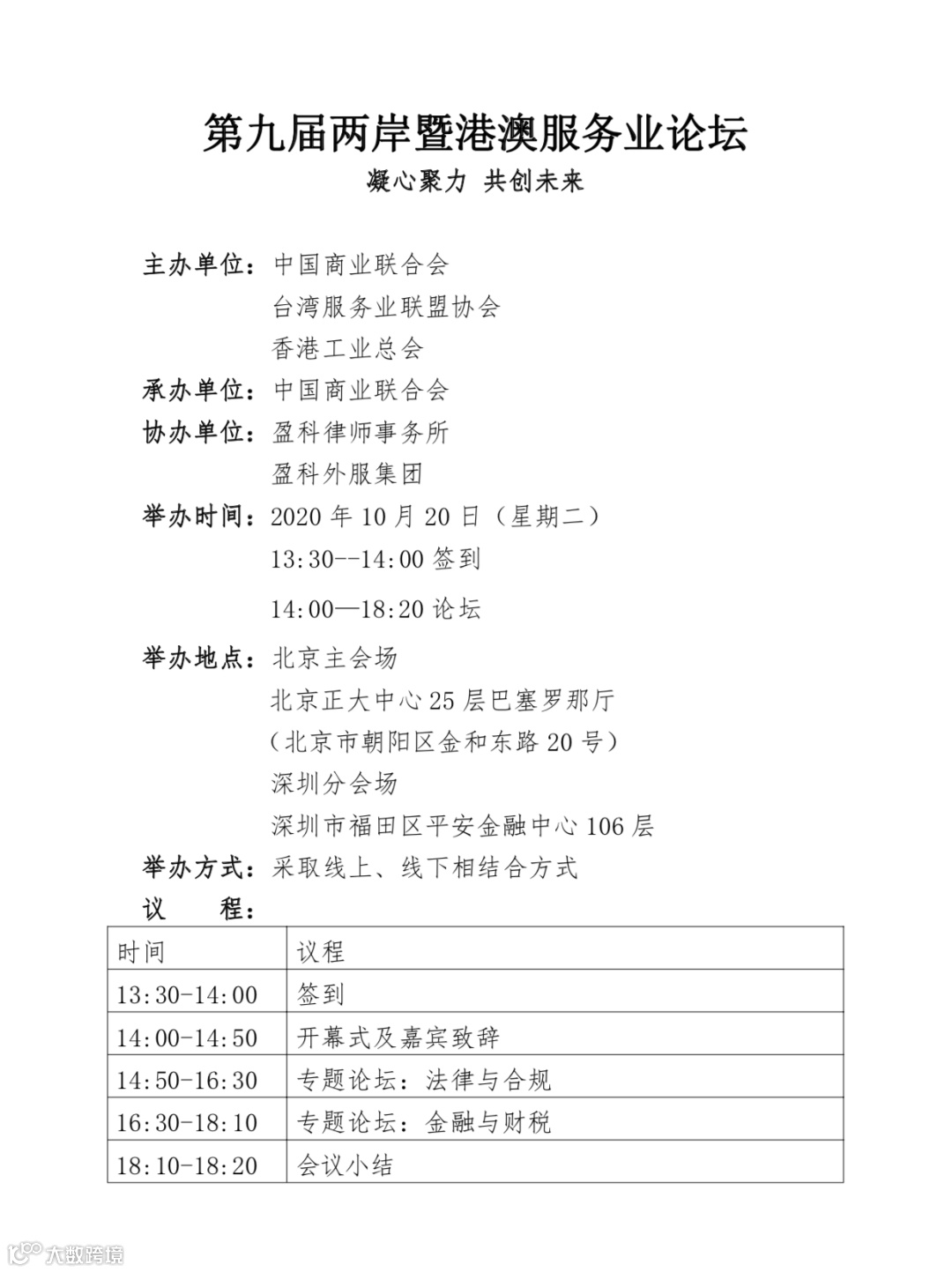 论坛由中国商业联合会、台湾服务业联盟协会、香港工业总会联合主办,盈科律师事务所、盈科外服集团协办。届时将邀请中国商业联合会、台湾服务业联盟协会、香港工业总会、国务院台湾事务办公室、国务院港澳事务办公室、商业部港澳司、中国贸促会、北京市台湾事务办公室、台湾商业总会联合会、盈科律师事务所、盈科外服集团以及来自两岸暨港澳相关企业及机构的领导、嘉宾、学者出席。