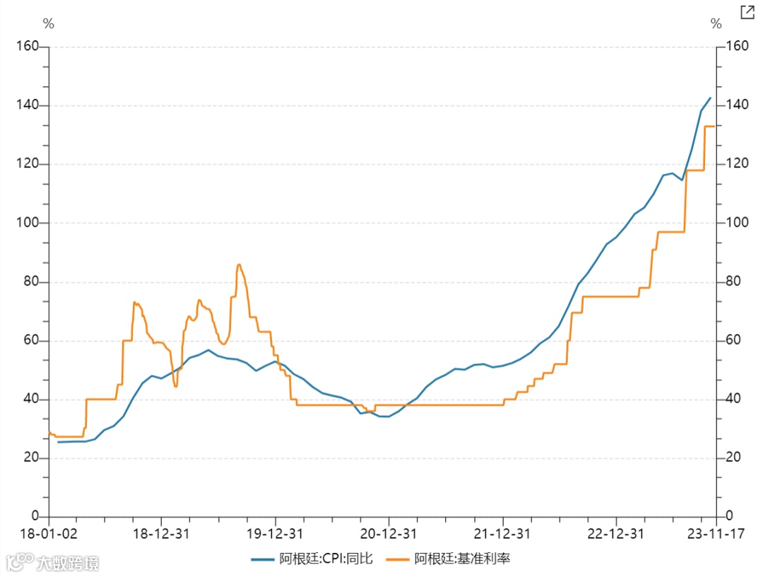 阿根廷是全球通胀最高的国家之一。数据显示,阿根廷10月通胀率为8.3%,而过去12个月年度通胀率达到142.7%,创32年来新高。