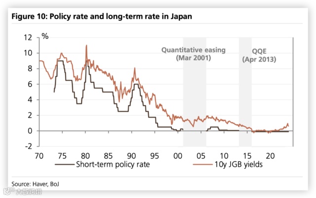 日本央行在1999年将利率降至零,甚至推出了各种非常规政策,如2001年的量化宽松政策、2016年的负利率政策和收益率曲线控制(YCC)。