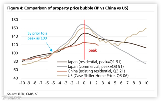 瑞银分析师Masamichi Adachi团队指出,国际争端催生了日本的经济过热和资产泡沫,而房地产泡沫破裂正是日本衰退的开端,后续漫长的企业去杠杆过程则是日本陷入长期资产负债表衰退的根源之一。