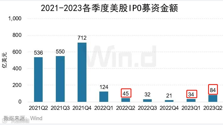 惨淡行情延续至2023年,今年上半年IPO共82起,同比减少32.79%,募资总额118.25亿美元,同比减少29.82%。
