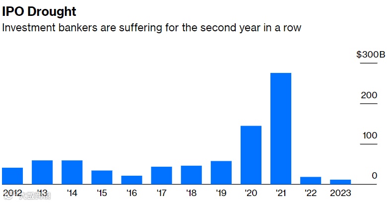 然而,2022年情况急转直下。全年美股IPO数量不到200家,仅募得183亿美元,成为金融危机以来最糟糕的一年。
